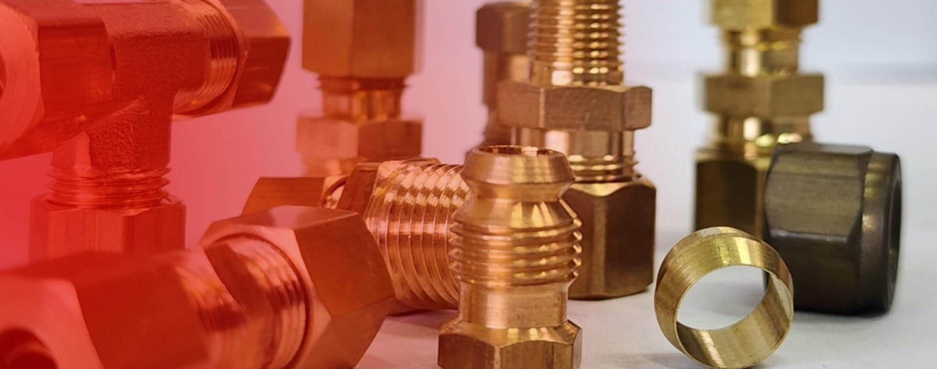 Acoples de compresión, tuercas barril y anillos en latón